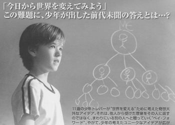 「偽善」 が悪いとも言いません。 このブログの初期にも書きましたが、オレは 「偽善」 も 「善」 だと思ってる人間なので。 ただ、あんまりにも安っぽくねえか?!と。 もっともっと、人生の喜びはあるだろ!と。 それならまだ、オスメント君が主演した映画 「ペイ・フォワード」 の “受けた恩を別の3人へ返していこう” 運動の方がずっと良かった。